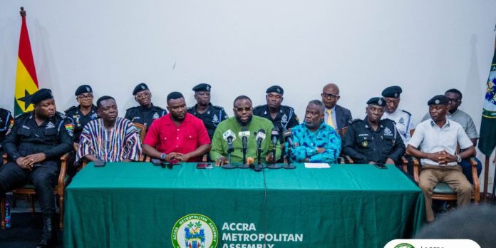 During a press conference at City Hall, Mayor Allotey, accompanied by members of the Metropolitan Security Council (METSEC), including Chief Superintendent Ebenezer Nketiah, the Accra Central Divisional Commander, stated that the time for dialogue and delays has ended. He emphasised the urgent need for swift and decisive action to restore order in the city. Mayor Allotey highlighted that the streets are not for trading but for vehicular and pedestrian use, adding that continued trading poses a threat to public safety and urban mobility.