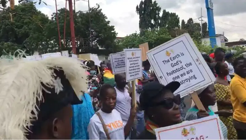 The protest walk reflects growing public dissatisfaction with the government’s efforts to stop illegal mining and highlights the urgent need for more decisive action to protect the country’s water bodies, forests, and ecosystems.