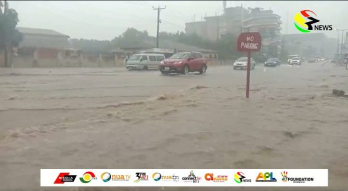 The Municipal Chief Executive (MCE) for Adentan Municipal Assembly, Ella Esiman Nongo, has confirmed that three people lost their lives following torrential rains that triggered widespread flooding across parts of Accra on Sunday, May 18, 2025. Speaking on the Citi Breakfast Show on Monday, May 19, Madam Nongo said the fatalities occurred in different parts of the municipality, including Lakeside, Nanakrom, and New Legon.