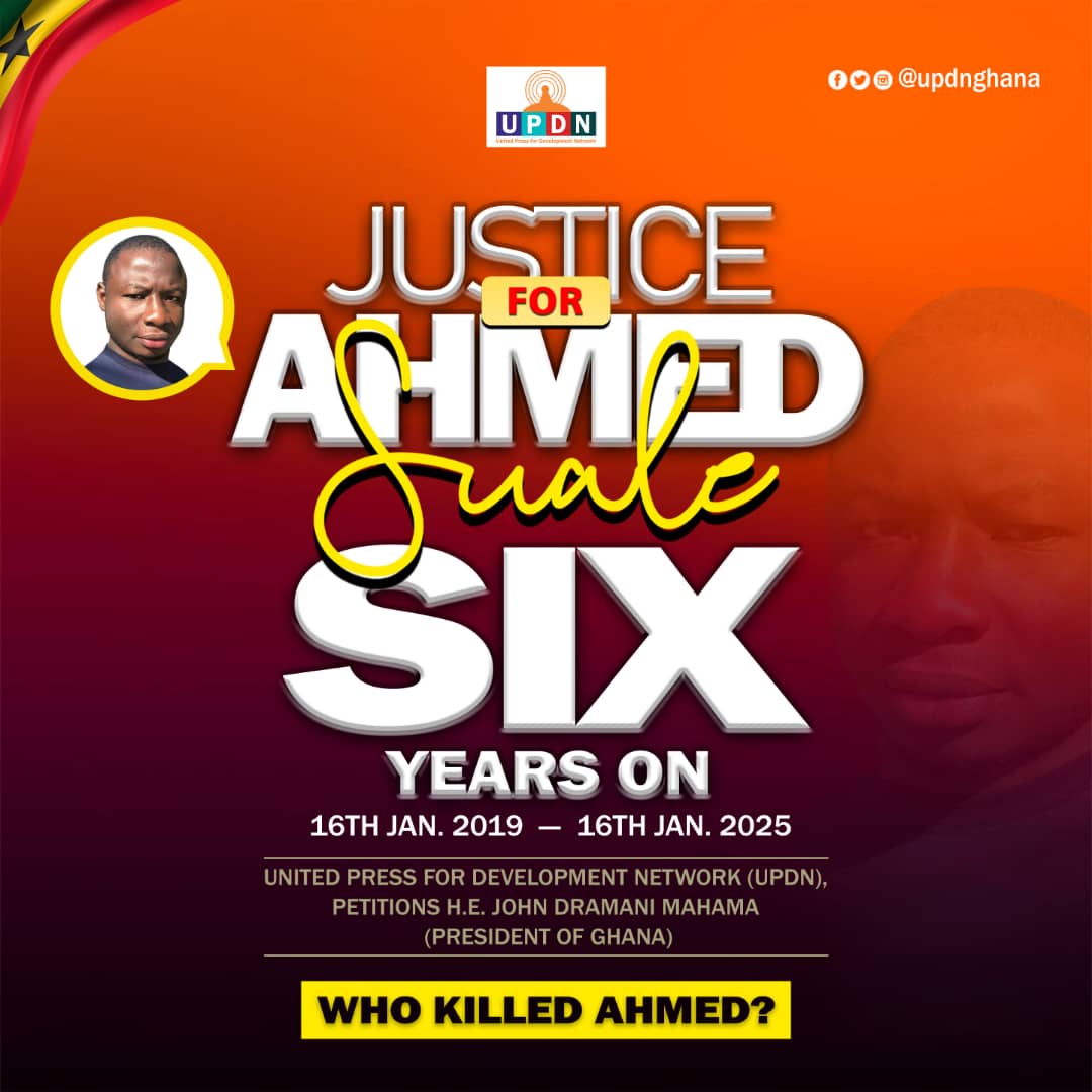 The United Press for Development Network (UPDN), a leading advocate for press freedom and justice, wishes to inform the public of its official petition to His Excellency John Dramani Mahama, President of the Republic of Ghana ahead of the sixth anniversary of the tragic murder of Ahmed Hussein-Suale.